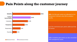 Let’s dive into the results and examine the primary pain points throughout the customer journey. The top concern identified is reliability. The findings reveal a fascinating trend: most pain points are behavioral rather than product related.
