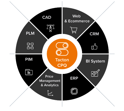 With 25 years of experience, Tacton knows the nuances of manufacturing sales. Tacton CPQ is designed for quick deployment and ease of use with a configurable UI, sparing customers the effort of developing an in-house solution. Tacton’s industry-leading backend and customizable frontend, along with a robust API, facilitate the integration of existing systems, providing a comprehensive user experience without overhauling legacy systems.